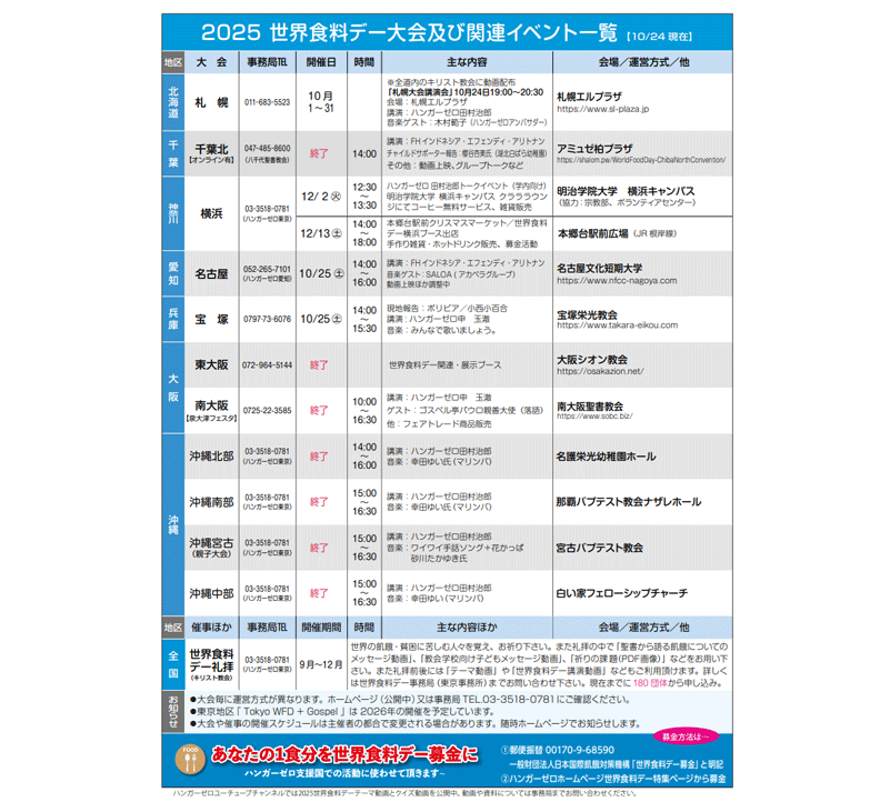この世界には、多くの苦しみ、悲しみが蔓延しています。特に、飢餓や貧困、また戦争や紛争によって痛み傷つく人々は後を断ちません。そのような方々に対する私たちの愛ある行動が慰めや励ましとなり、また原因の解決へとつながることを私たちは願っています。痛み苦しむ方々に目を向け、関心を持ち続け、募金をすること、周りの人に世界の現状を伝えること…そんな小さく思える一歩が、世界の人々と共に生きる愛の連鎖として広がっていくと信じています。